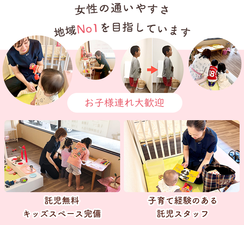 お子さま連れのママさんにも安心して施術を受けていただける環境を整えています。