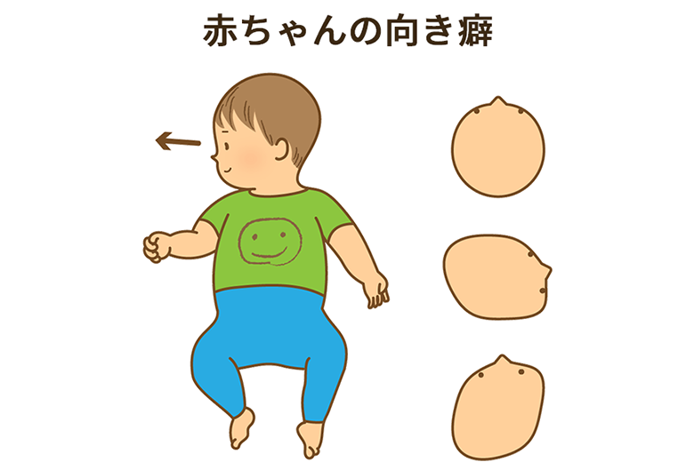 向き癖により、いつも頭の向きが同じであると、柔らかい赤ちゃんの頭はすぐに変形してしまいます。