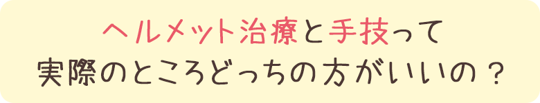 - ヘルメット治療では約1~2ヶ月で効果が現れますが、手技による調整では3ヶ月目から現れるようになります。(症状にもよります。)