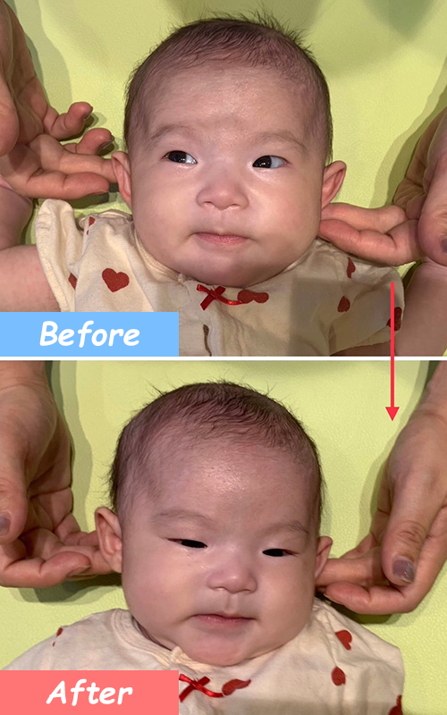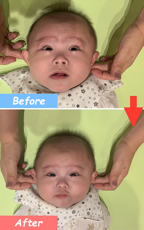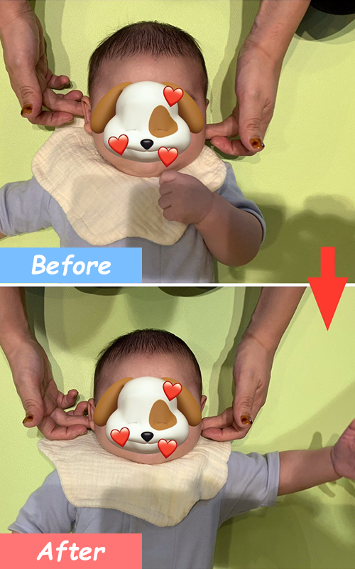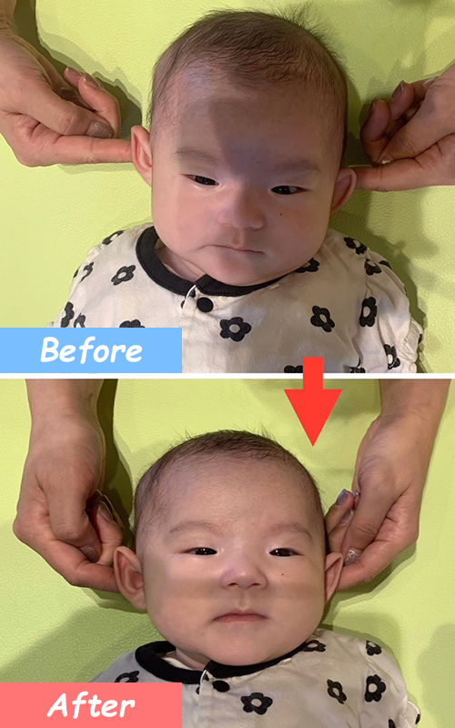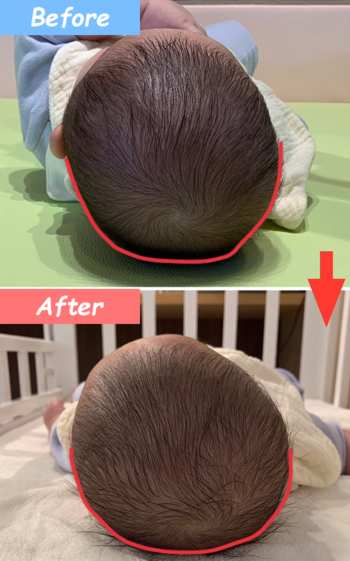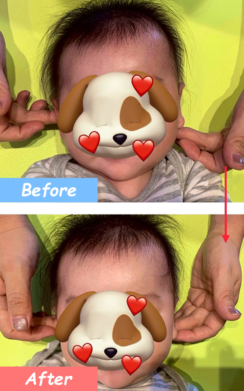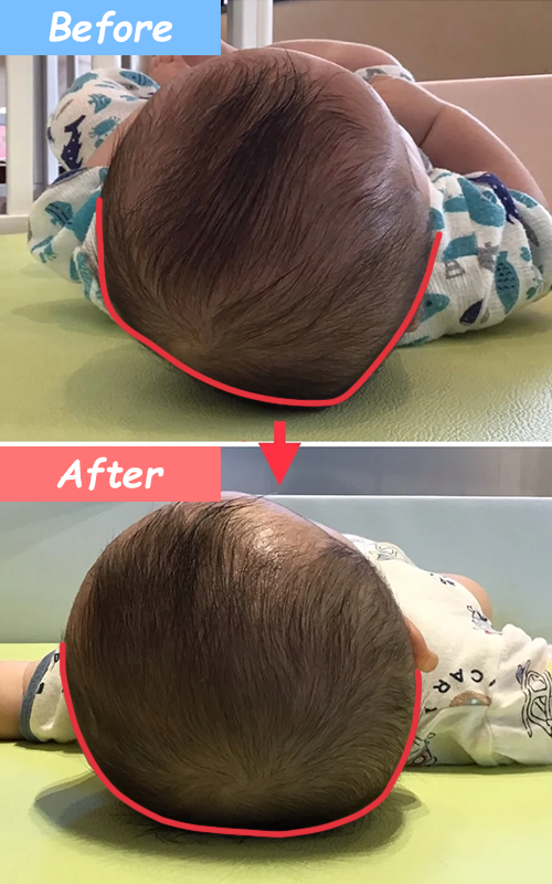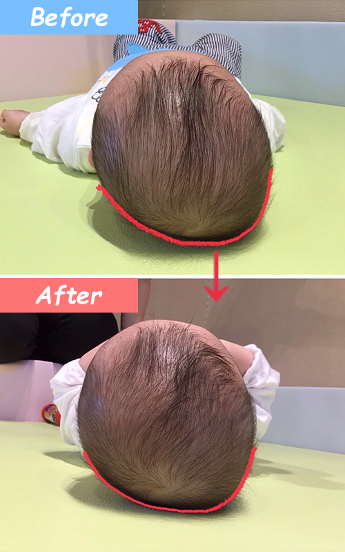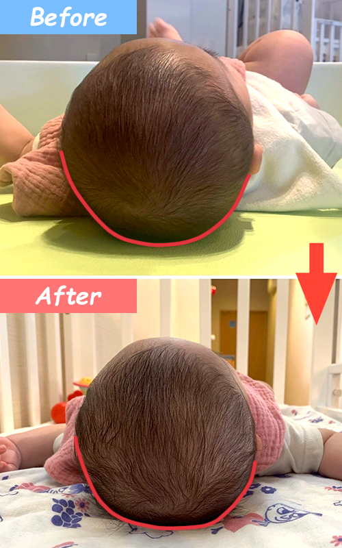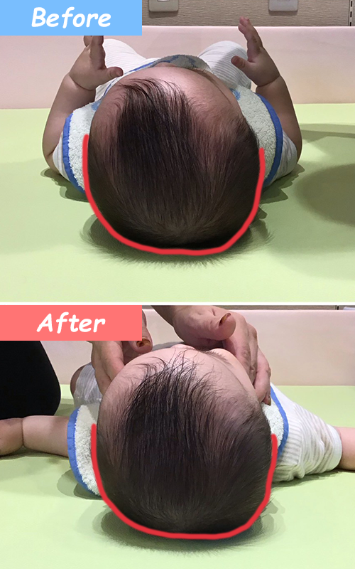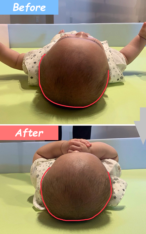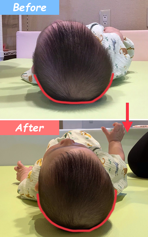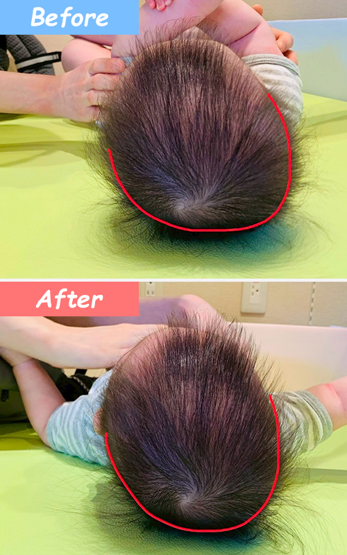 背骨を調整して向き癖を直すのと同時に頭の形も整えるので、頭の形が整った後も再度変形する可能性が非常に低くなります。