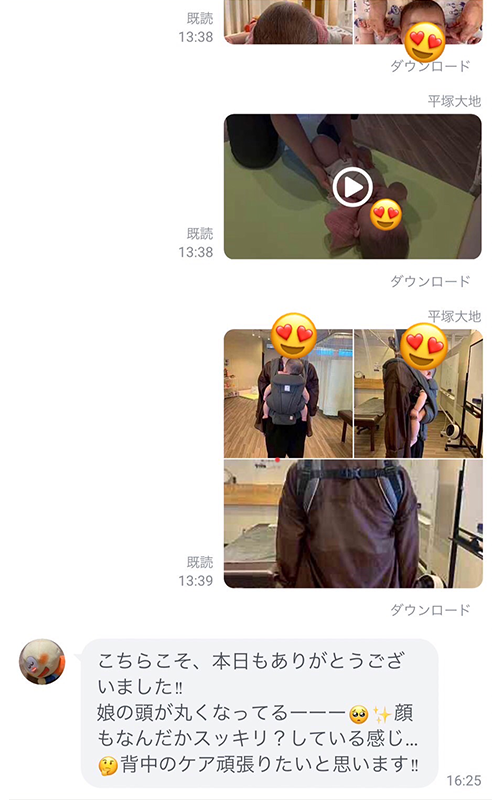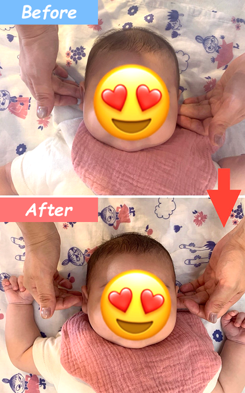 娘の向きぐせ、頭の歪みが気になっていました。1回の施術での変化にびっくり‼︎丸い頭になるのが楽しみです。