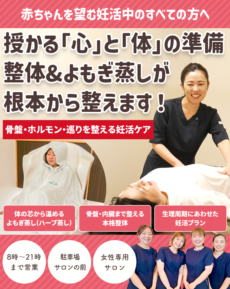 整体で骨盤を整え、子宮を正しい位置に戻すことで、妊娠しやすいベースをつくります。