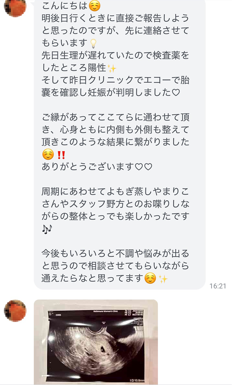 身体を温め、巡りを整え、骨盤の歪みを調整していく中で、少しずつ体調が変わっていくのを実感しました。そして数ヶ月後には、念願だった妊娠が叶ったのです。あの時の喜びは、今でも鮮明に覚えています。